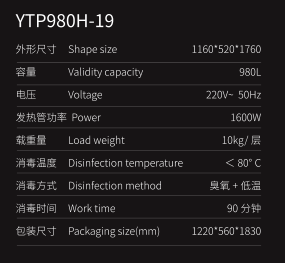 參數(shù)如下:(適用于80度以下的餐具消毒)